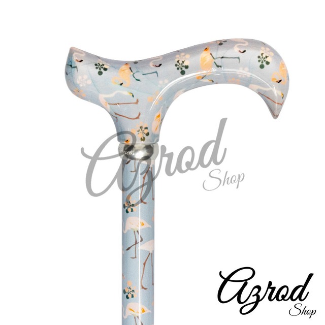 フラミンゴ柄が華やかなアニマルフレンズデザイン・高さ調整可能アルミ製ダービーハンドルステッキ・杖