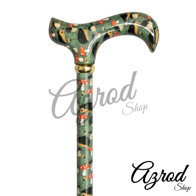 ハリネズミとキノコ模様が彩る・高さ調整可能アルミダービーハンドルステッキ・杖