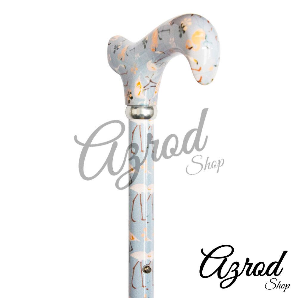 フラミンゴ柄が華やかなアニマルフレンズデザイン・高さ調整可能アルミ製ダービーハンドルステッキ・杖